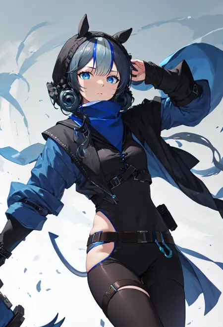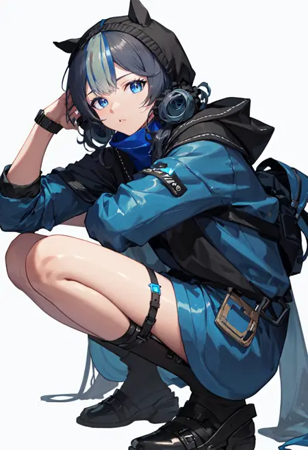 触发词为 glaucus_arknights,精简标签为 multicolored_hair, blue_hair, streaked_hair, blue_eyes, double_bun, hair_bun, twintails。当某些特征(例如发色)有时不够稳定时,您可在提示词中添加这些标签。
