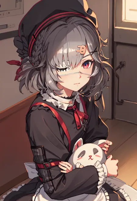 트리거 단어는 popukar_arknights이며, 축소된 태그는 hair_ornament, eyepatch, hat, red_eyes, black_headwear, grey_hair, hairclip, x_hair_ornament, medical_eyepatch, short_hair, rabbit_hair_ornament, bow, braid입니다. 어떤 특징(예: 머리카락 색상)이 일정 시점에서 안정적이지 않을 때, 이러한 태그를 프롬프트에 추가할 수 있습니다.