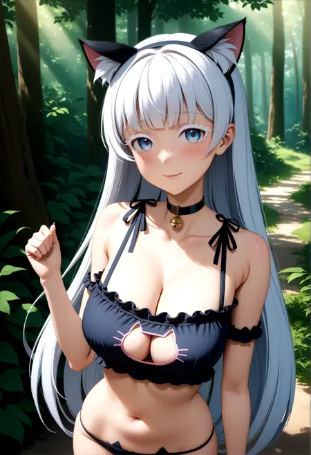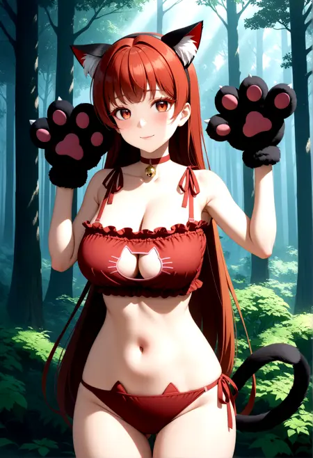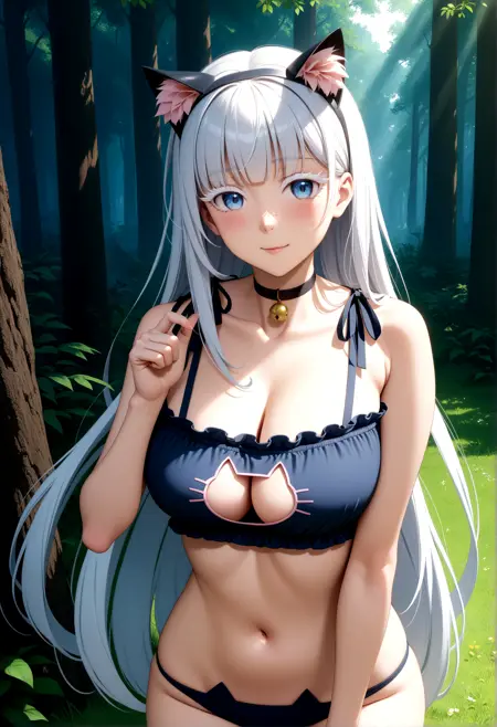 黑色胸罩、黑色内裤、蝴蝶结、动物耳朵、裸露肩膀、内衣、锁骨、内裤、荷叶边、项圈、猫耳、胸罩、服装剪裁、假动物耳朵、胸部剪裁、仅穿内衣、表情包服饰、荷叶边胸罩、猫形剪裁、猫内衣、猫耳内裤、爪子鞋