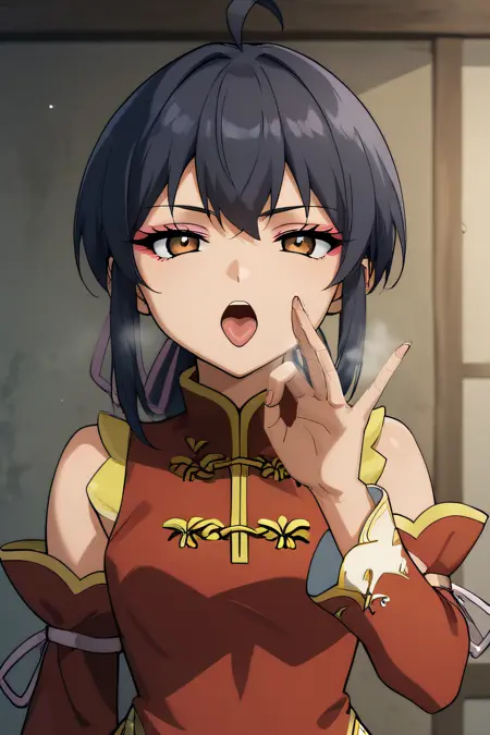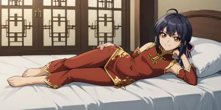 chanlee, bare shoulders, china dress, detached red sleeves, red pants