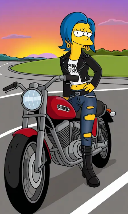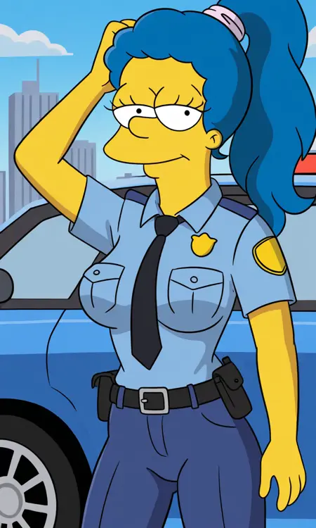 cartoon, 1girl, marge_simpson, solo, blue hair, hairdown/ponytail