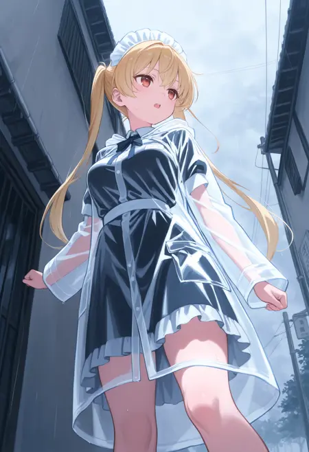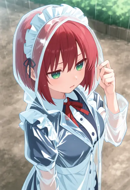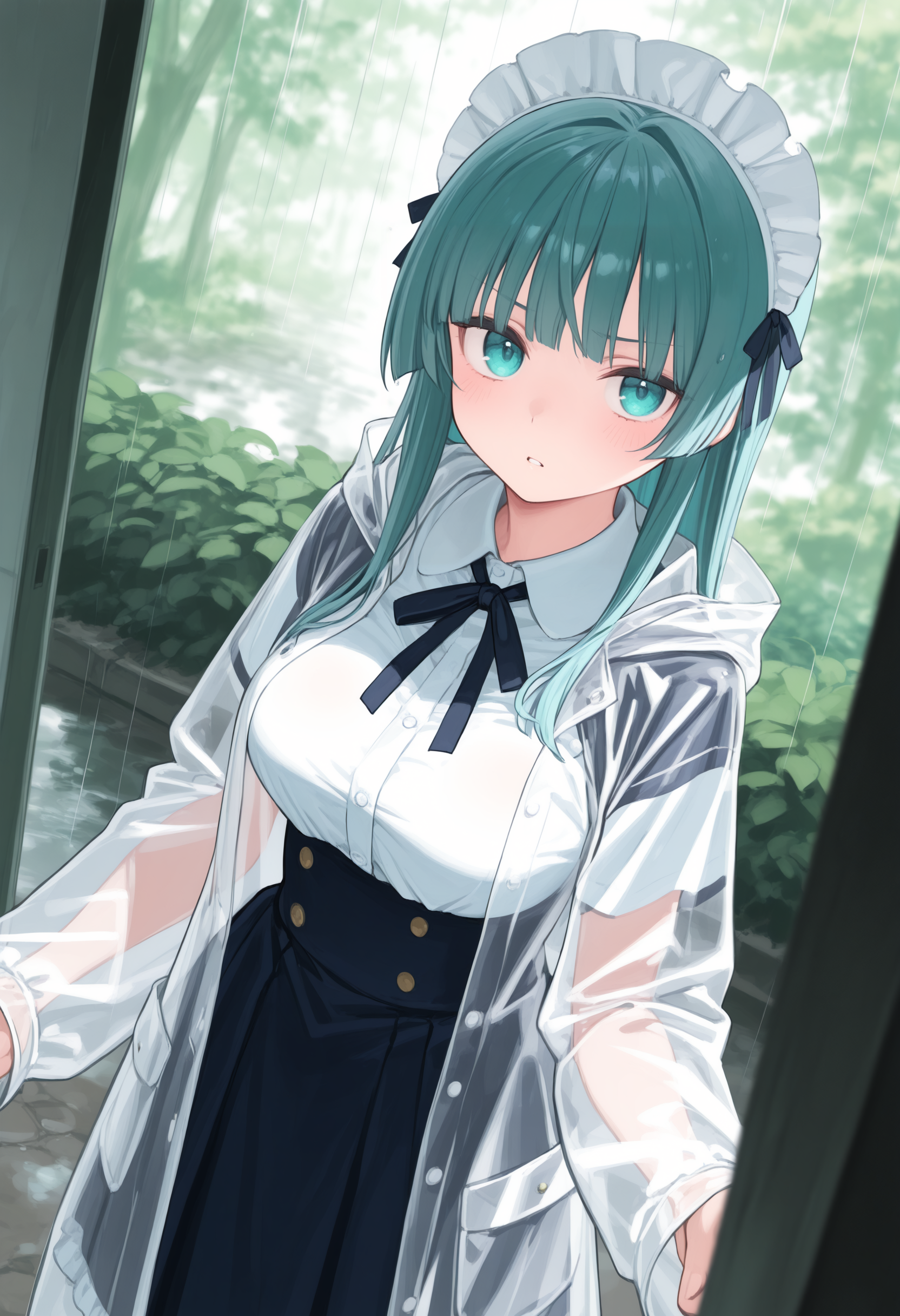 原本该提示本身是有效的,但似乎被识别为“裸体雨衣”,导致下方呈现肤色,现已修正为服装。由于同时学习了短袖和长袖,可能会出现长袖衣服的袖子部分易透出皮肤,或短袖衣服只在手腕处描绘袖子的情况,请通过抽卡尝试调整。