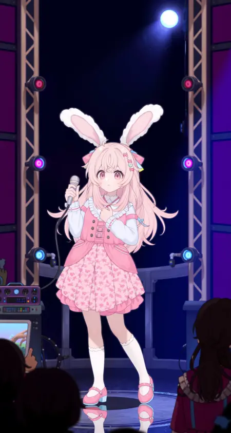 base prompt: pippa, rabbit ears, bangs, virtual youtuber, pink hair, pink eyes, ahoge, looking at viewer, hair ornament,
