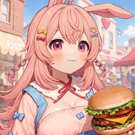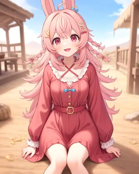 基础提示词:pippa, 兔子耳朵, 刘海, 虚拟主播, 粉色头发, 粉色眼睛, 天线发, 直视观众, 发饰,