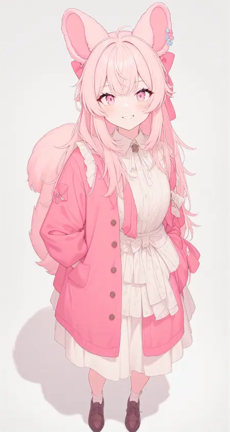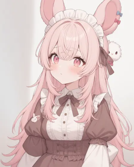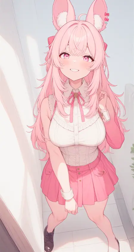 base prompt: pippa, rabbit ears, bangs, virtual youtuber, pink hair, pink eyes, ahoge, looking at viewer, hair ornament,