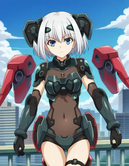 origami tobiichi ast,短发,蓝眼睛,手套,白发,盔甲,露脐,头饰,机甲少女,