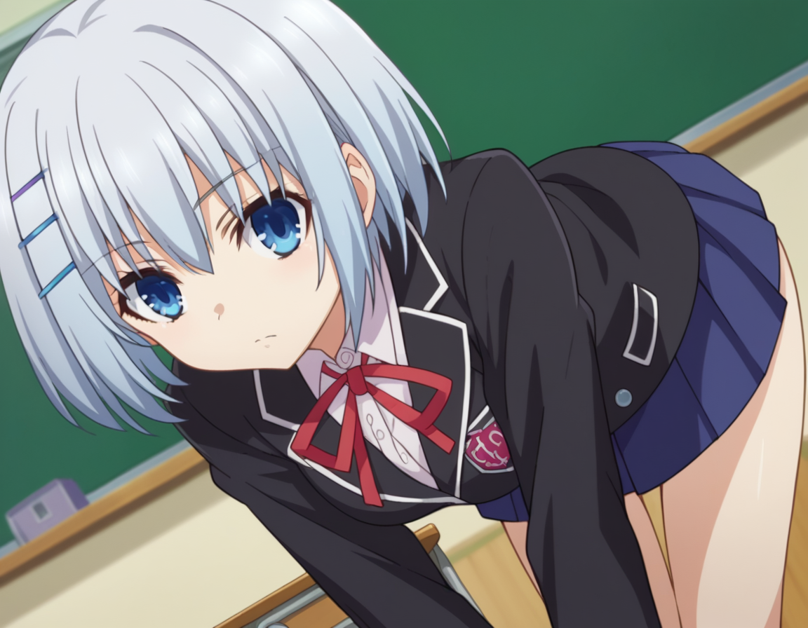 origami tobiichi 校服,短发,蓝眼睛,衬衫,发饰,丝带,校服,夹克,发夹,红丝带,黑色夹克,颈带,西装外套,
