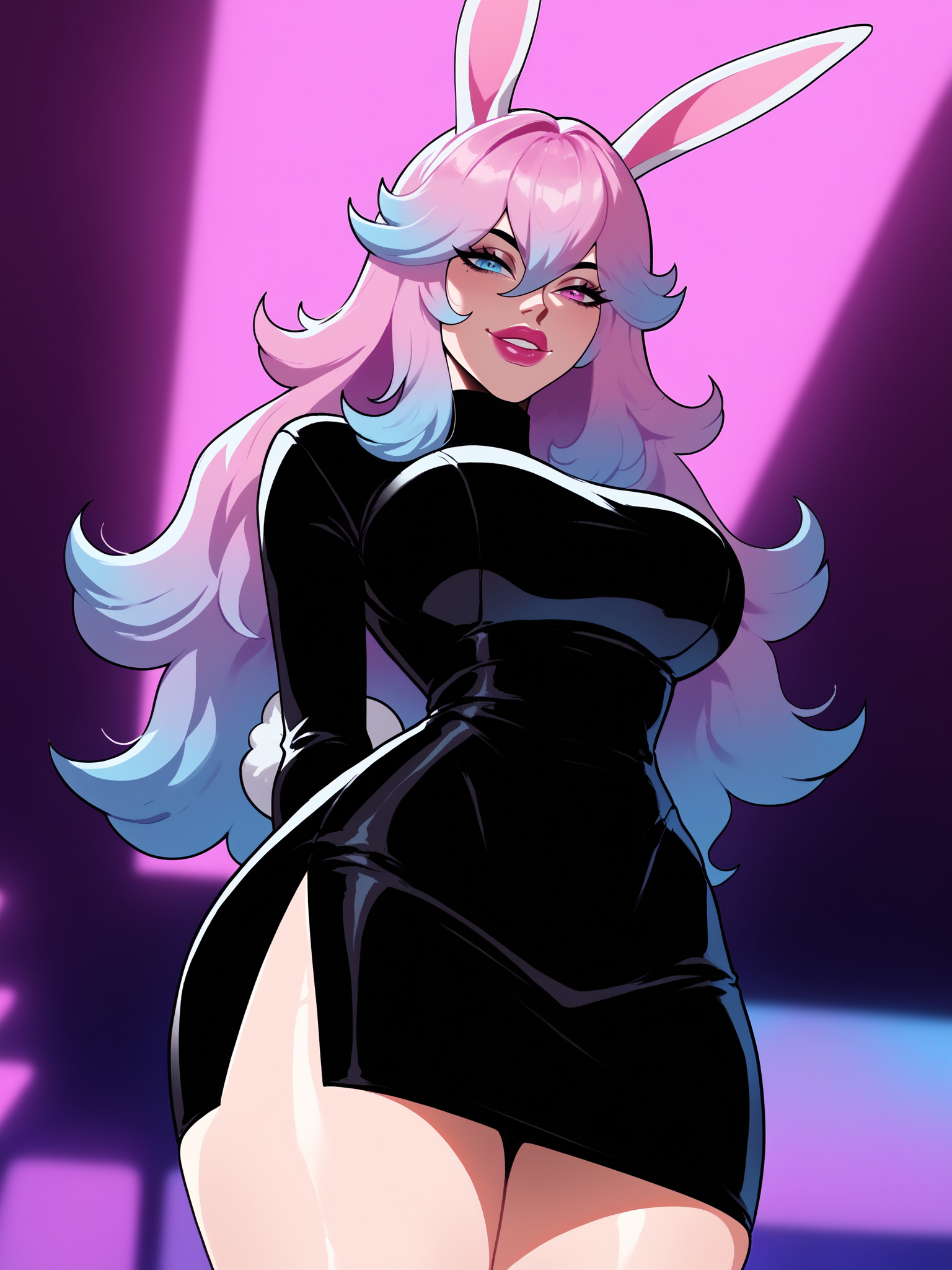 説明用ワード:紫髪、ピンク髪、青髪、多色髪、グラデーション髪、ウサギの耳、異色瞳、ピンクの目、青い目