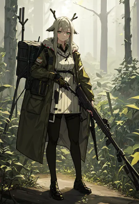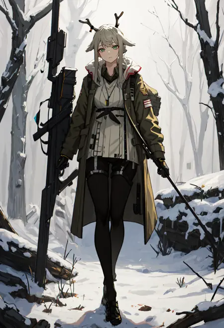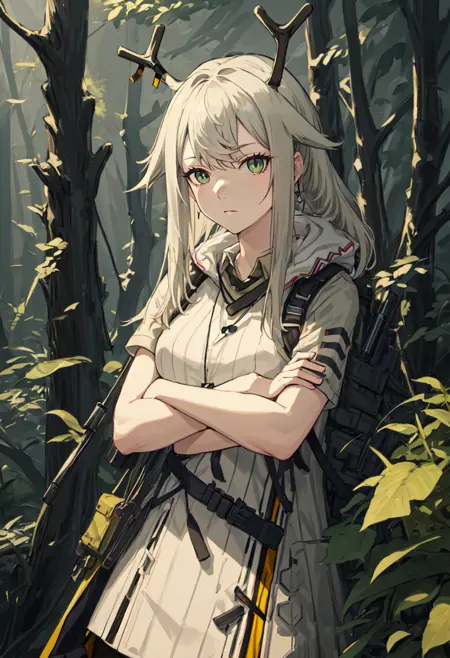 トリガーワードはfirewatch_arknights、削除されたタグはhorns, long_hair, grey_hair, sidelocks, ponytail, green_eyes, breastsです。ある特徴(例:髪の色)が不安定な場合、これらのタグをプロンプトに追加してください。