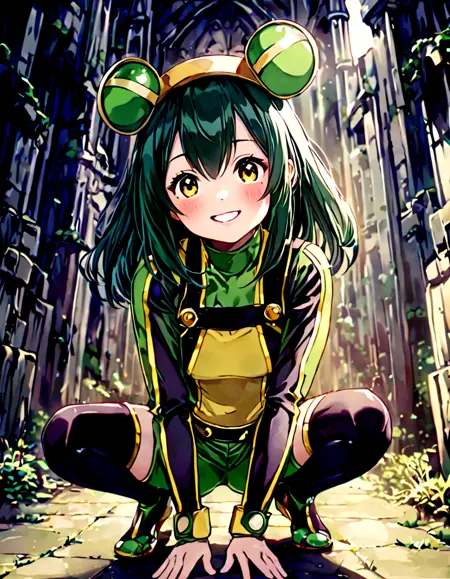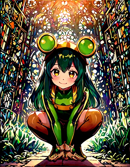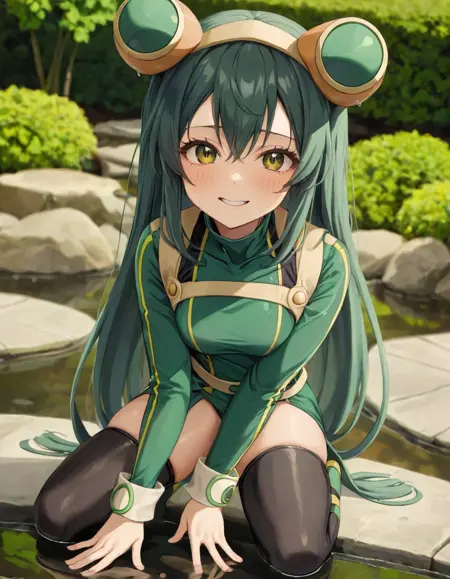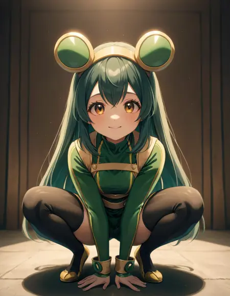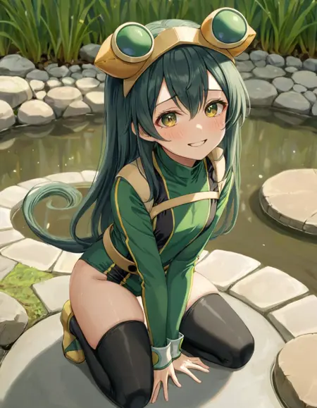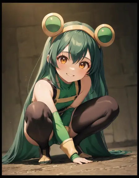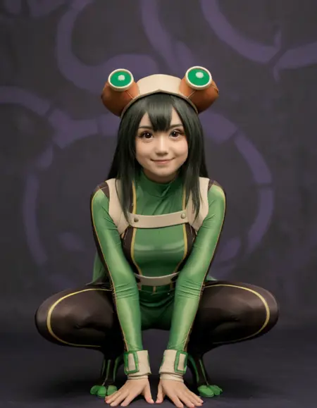 Froppy, also known as Tsuyu Asui, is a student at U.A. High School, training to become a Pro Hero in the world of "My Hero Academia." With her frog-like abilities, she excels in water-based combat and stealth operations, navigating environments with ease and agility. Known for her calm and straightforward demeanor, Tsuyu's strong sense of responsibility and unyielding courage make her a dependable ally in the fight against villains, embodying her aspiration to leap beyond her limits and protect those in need.
