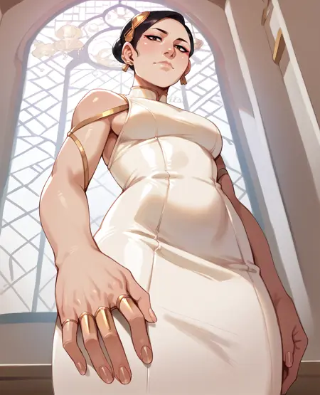 white dress, jewelry, bare shoulders, --- short skirt, or pencil skirt,