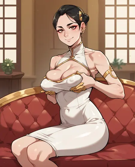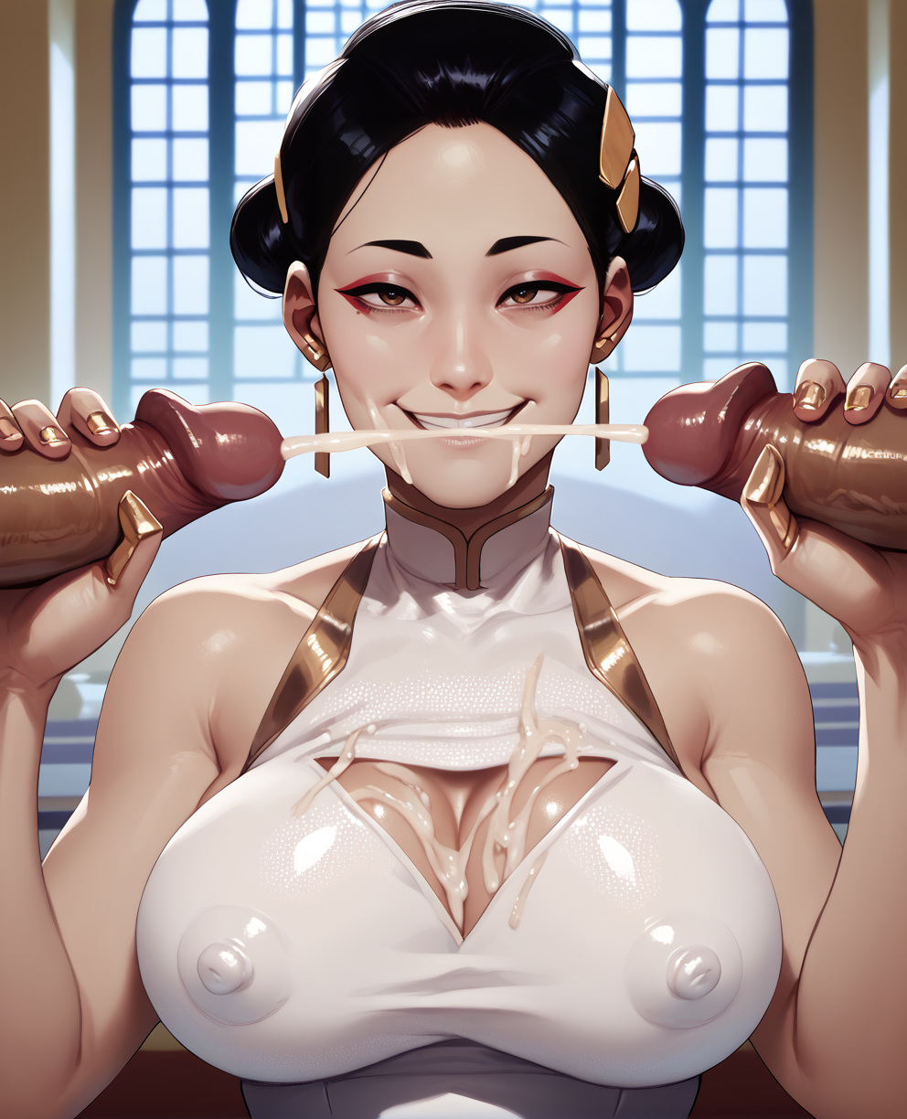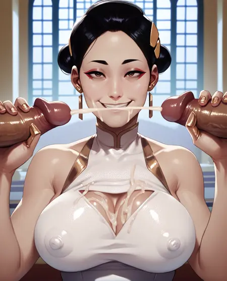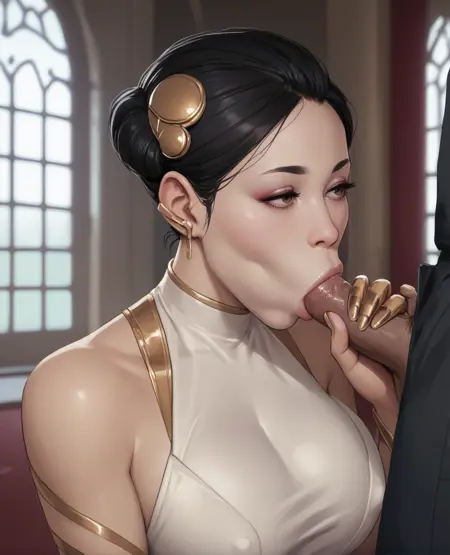 some sort of hair bun hair style, -- banfgs, in NEG may help accuracy