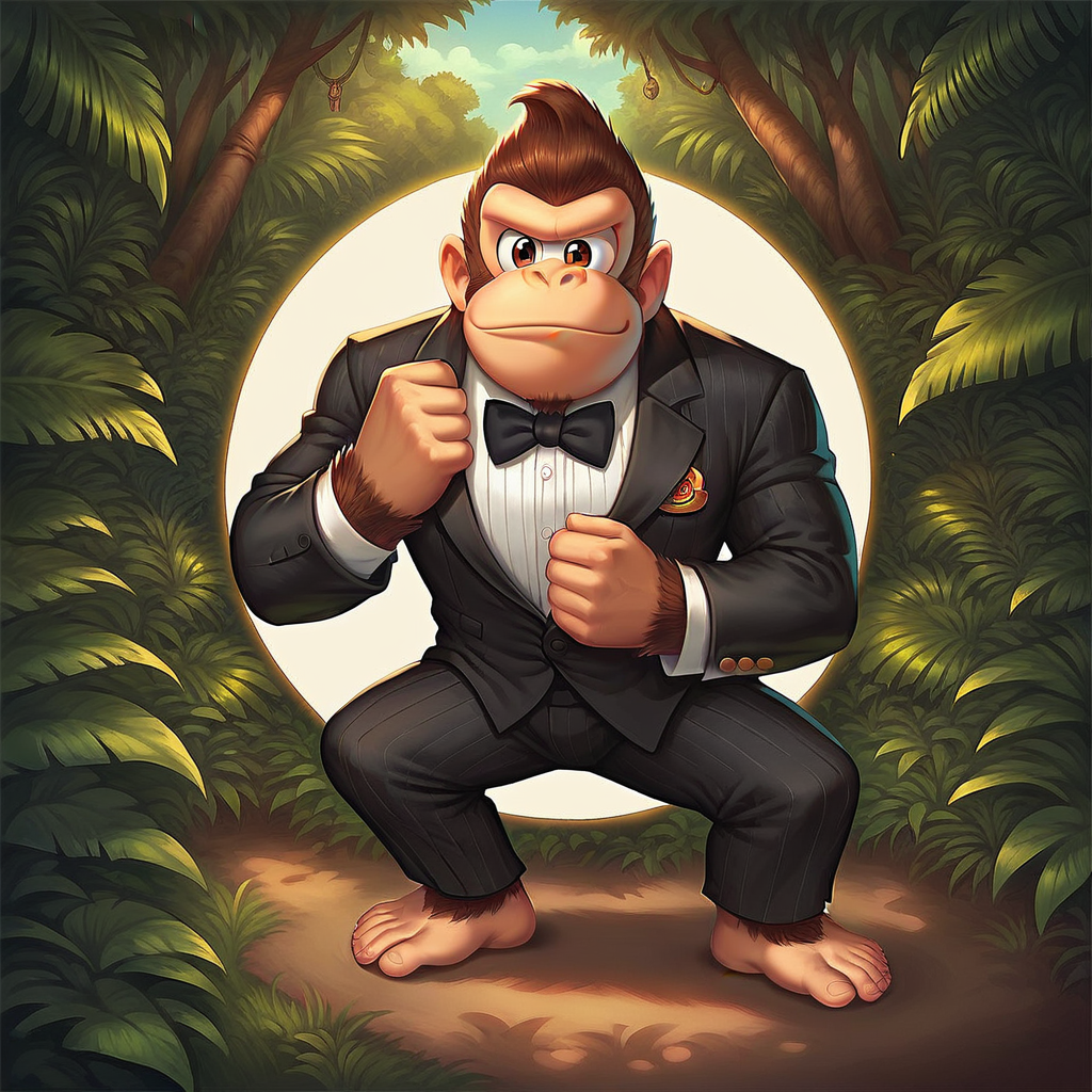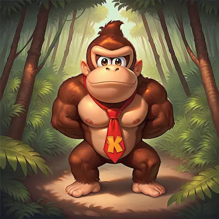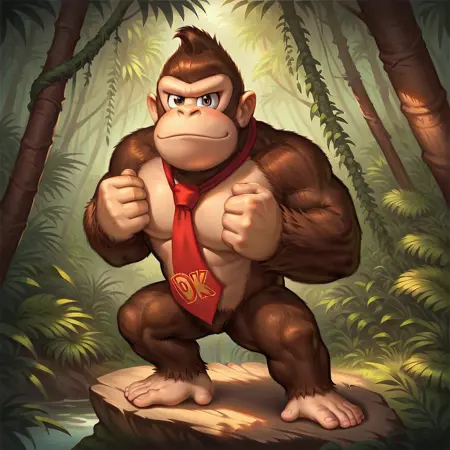 免责声明:呃,我之前在提示词上搞砸了,因为我没考虑到Pony Diffusion知道“驴”是什么……所以“Donkey Kong”是个糟糕的提示词,会生成带驴耳朵的DK图像……相反,我发现单纯使用“Kong”效果更好。我以后可能会更新这个LoRA来修复这个问题,但目前它运行得还不错。