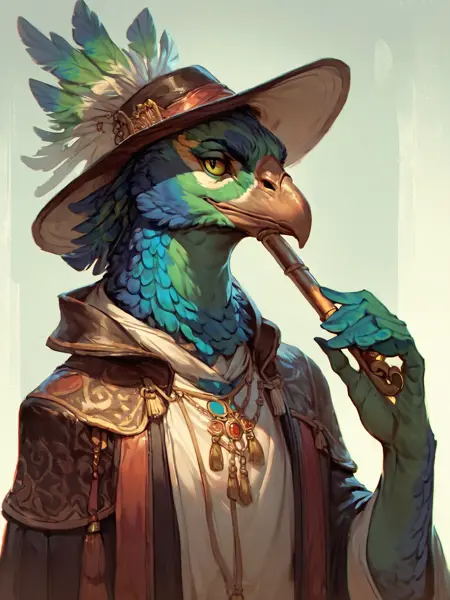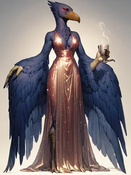 活性化するには、「anthro」に(eagle、stork、peafowl、heron)を追加するだけです。羽の色や翼のついた腕を加えると、よりユニークな結果を得られます。