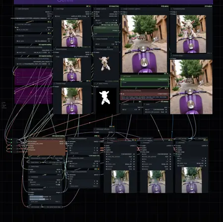 이 워크플로우는 이미지에서 주체를 제거하고, Photoshop의 생성 채우기 스타일과 유사한 기술을 사용하여 배경을 채우며, 주체를 별도의 투명 레이어에 저장합니다.