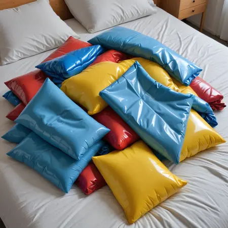 Add glossy for shine, dirty for matted and texture, deflated creased or folded for increased creases, inflatable for inflatables.