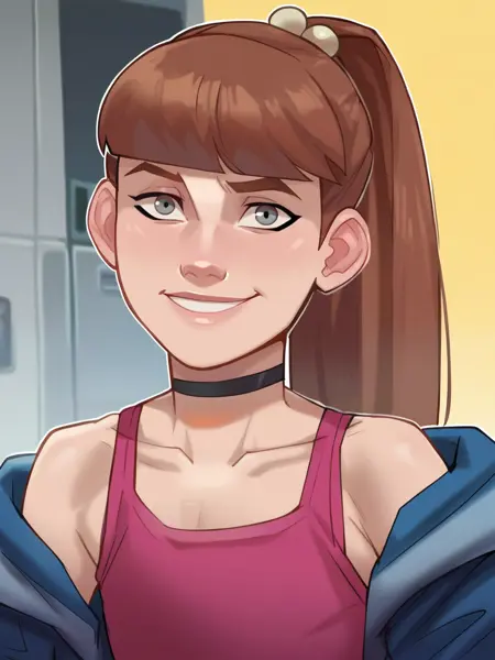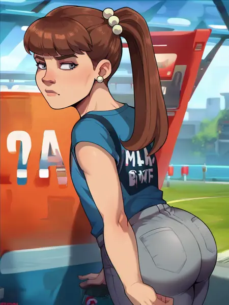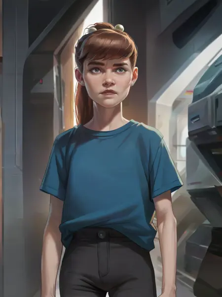推荐提示词: "m_g, 1girl, brown hair, gray eyes" + "score_7_up"
