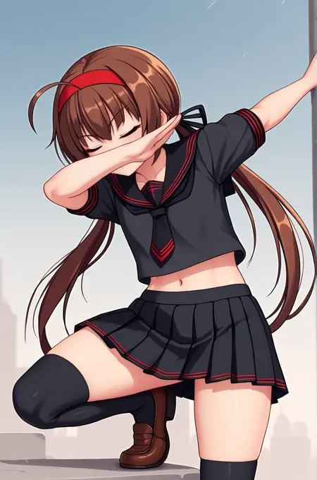 Trigger Words for school outfit are "Ryoubi_School, black serafuku, black skirt, pleated skirt, school uniform, black legwear, brown loafers,".