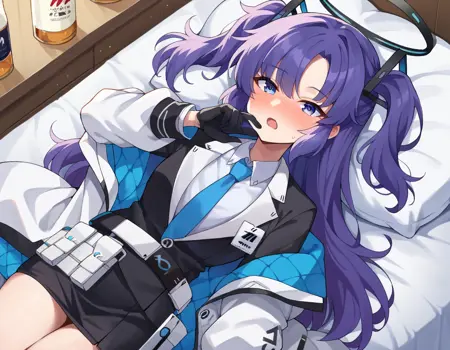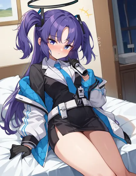 yuuka, blue eyes, halo, purple hair, two side up, long hair,