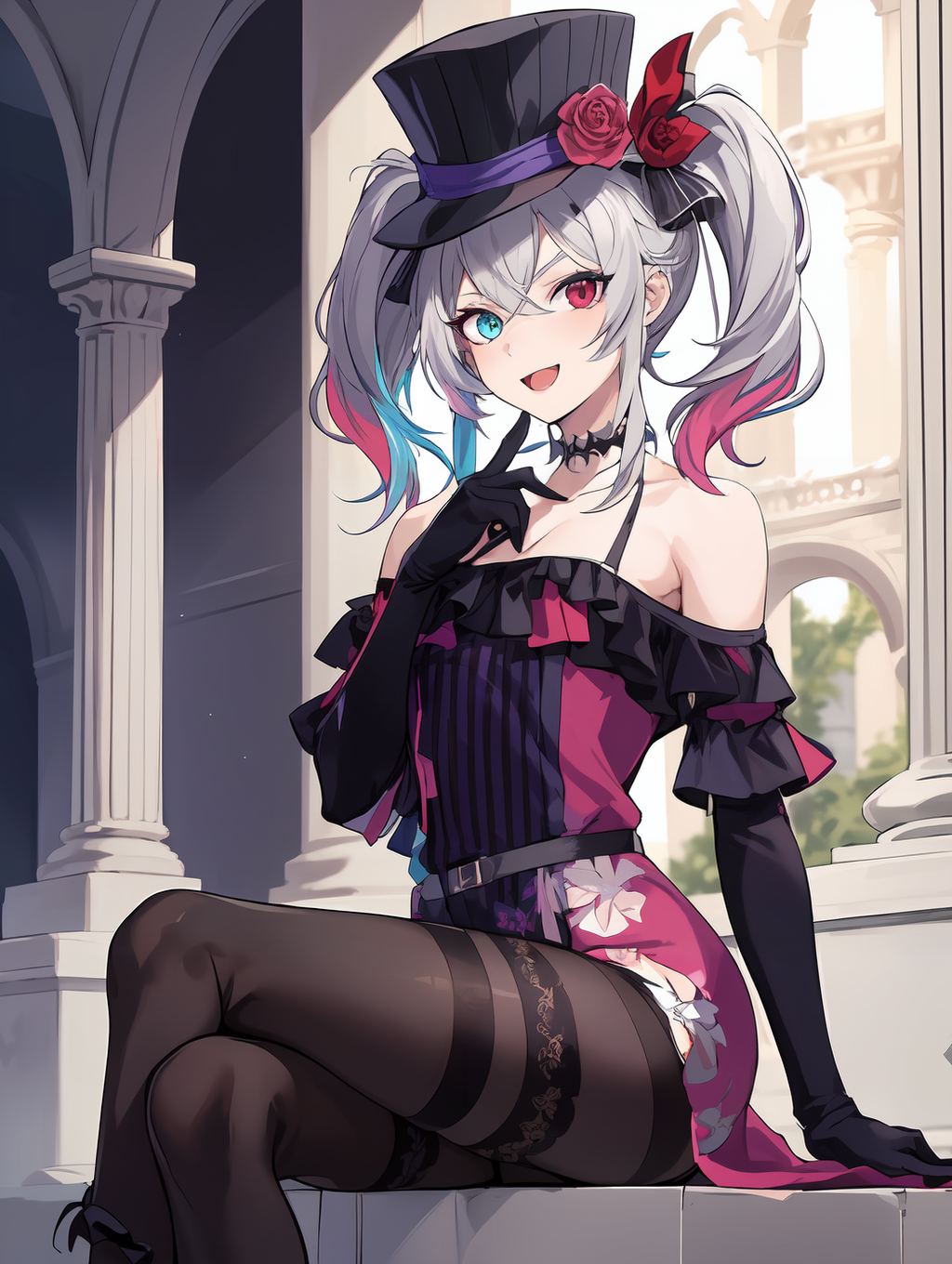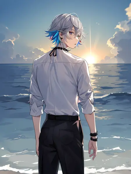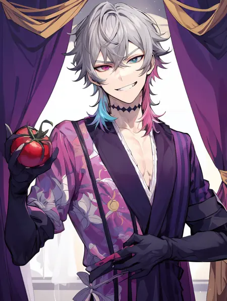 标签: GavisBettel,灰发,多彩发色,虹膜异色,星形项圈,