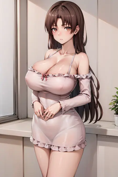 キャラクタートリガー:茶色の髪、長髪、分け目のある前髪、巨大な胸、茶色い目