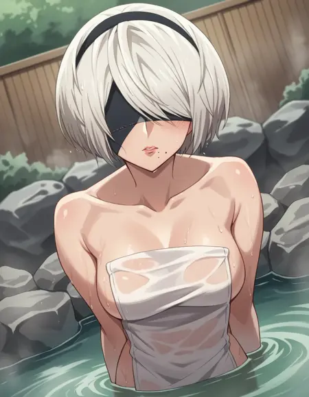 2b, black blindfold, black hairband, blindfold, hairband, short hair, white hair,