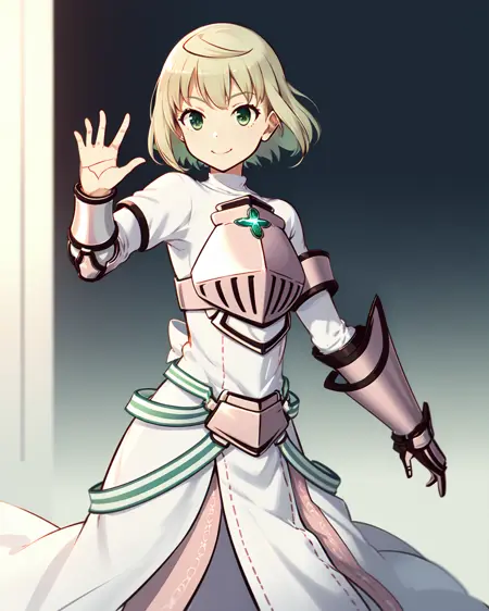 Appearance: blonde hair, ahoge, green eyes