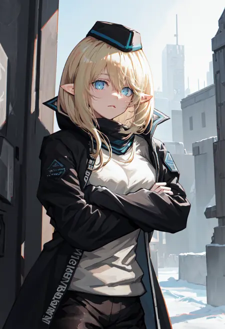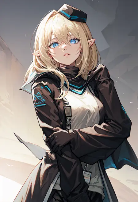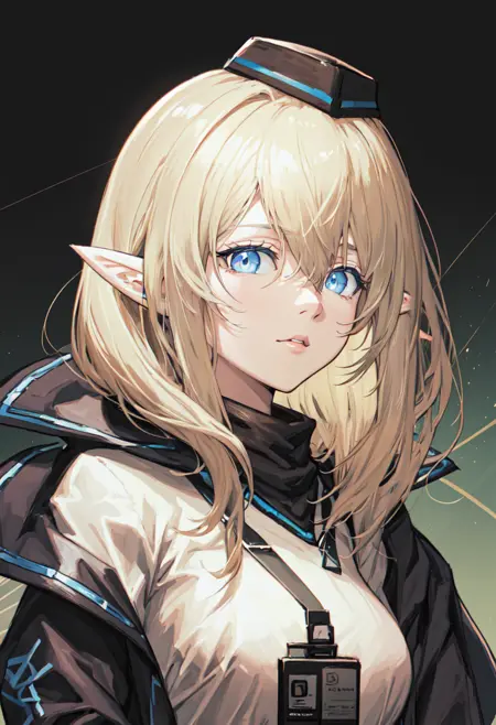 트리거 단어는 durin_arknights이며, 축소된 태그는 blonde_hair, hat, long_hair, blue_eyes, pointy_ears, black_headwear, hair_between_eyes입니다. 어떤 특징(예: 머리카락 색상)이 불안정할 때 이 태그들을 프롬프트에 추가하세요.