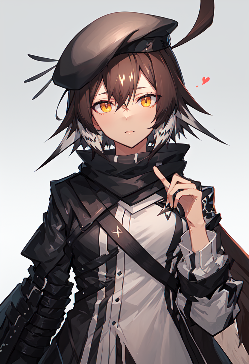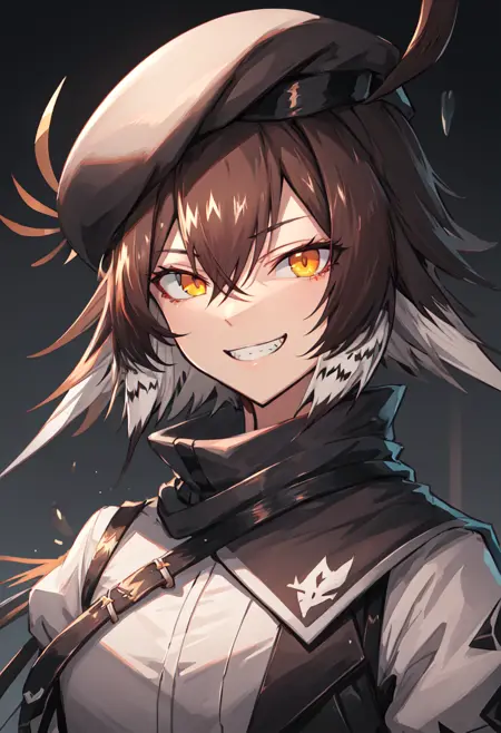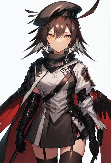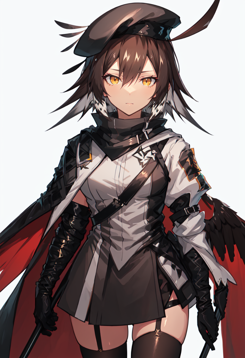 - 정제된 캐릭터 태그는 갈색 머리, 짧은 머리, 눈 사이의 머리, 다색 머리, 이색 머리, ahoge, 흰 머리, 모자, 검은 머리장식, 베레모, 노란 눈, 날개, 새 소녀, 주황색 눈입니다. 캐릭터의 핵심 특징(예: 머리색)이 안정적이지 않을 때 이 태그들을 프롬프트에 추가할 수 있습니다.
