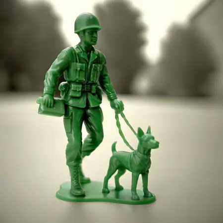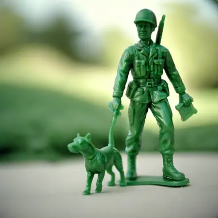 Army men, or plastic soldiers, are toy soldiers that are about 5 cm (2.0 in) tall and most commonly molded from low-density polyethylene plastic, which makes them durable and flexible. Unlike the more expensive toy soldiers available in hobby shops, army men are sold at low prices in discount stores and supermarkets. Army men are traditionally solid green or tan and almost always dressed in modern military uniforms and armed with 20th-century weapons. 'Jumbo' army men are a less common secondary scale with 4.75-inch (12.1 cm) soldiers made by the same process.
