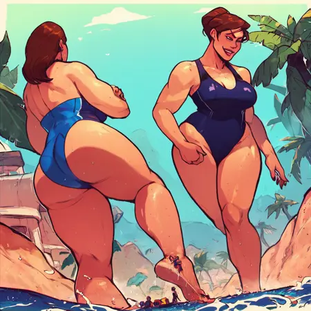GTS Foot worship (WIP): I've attempted models like this and had trouble making something that works. It's tricky because it's nearly impossible to prompt poses for two different subjects simultaneously. The tiny subject is also often at the low end of what can be resolved without upscaling and careful inpainting. I think the approach is to create something where the prompt mostly poses the giantess and the model just knows what the worshipper should do, but that requires some very granular training of specialized models.