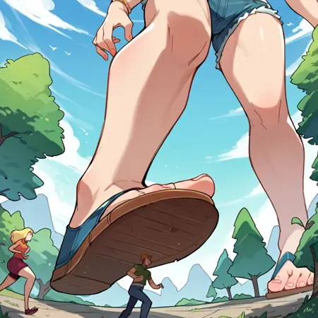 Does pretty much what it says on the tin - this is a collection of LoRAs that produce images consistent with giantess foot fetish. As I've trained more, "giantess feet" is a bit of a broad umbrella - more specialized models will likely be put in their own LoRA pages. This will remain a collection mostly focused on people under or between giantess feet. Generally tested so that weight 1.0 is optimal (though tacking on other LoRAs usually requires you reduce the weight, as do some checkpoints that are less amenable to LoRAs), generally supports anime and toon-style checkpoints.