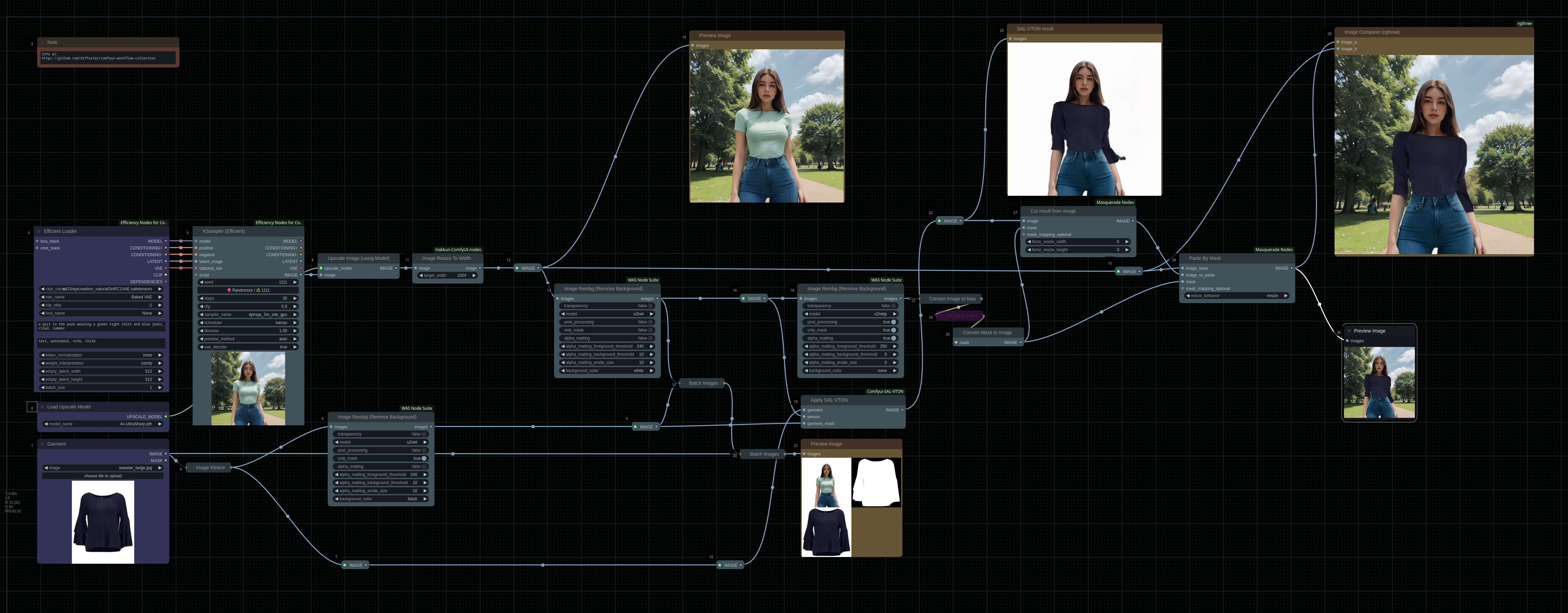更多详情请参见 https://github.com/diffustar/comfyui-workflow-collection/tree/master/workflows/sal-vton-clothing-swap