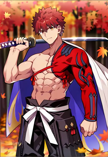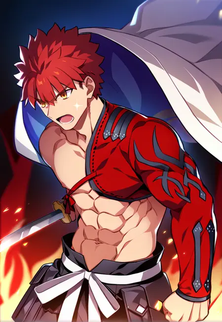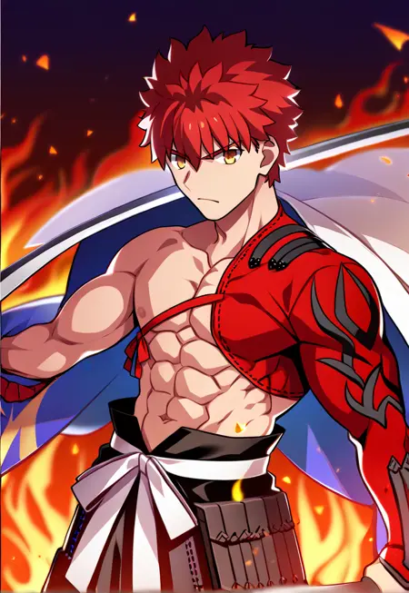 Trigger words: senji_muramasa_(fate), red hair, yellow eyes, igote,