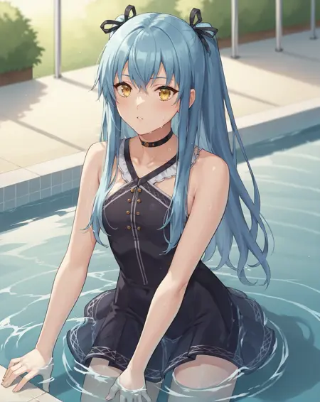 Azure swimsuit: tioswim1, black ribbon, swimsuit