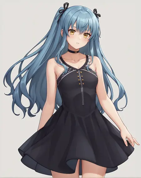 Base appearance prompt is tioplato, long hair, blue hair, yellow eyes