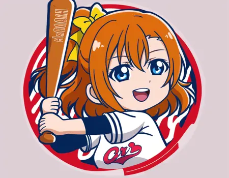 You can reproduce carpboy with baseball bat,holding,swinging,looking at viewer,circle,character name,logo,chibi,white background,simple background,.