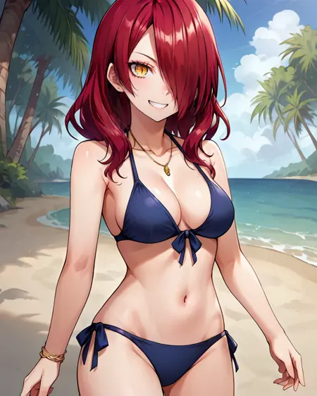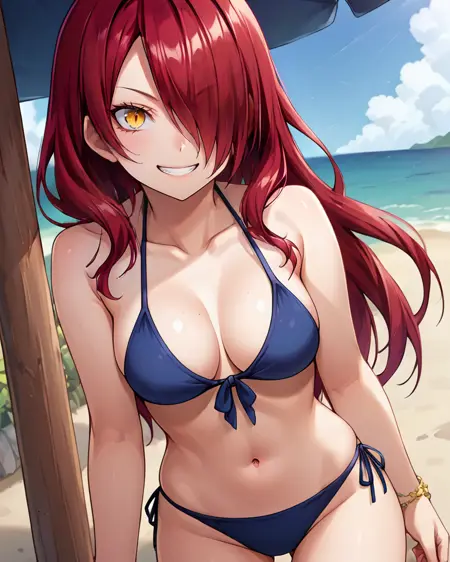주요 트리거: 코바야시 린도, 붉은 머리카락, 한쪽 눈 위의 머리카락, 수직 동공, 노란 눈