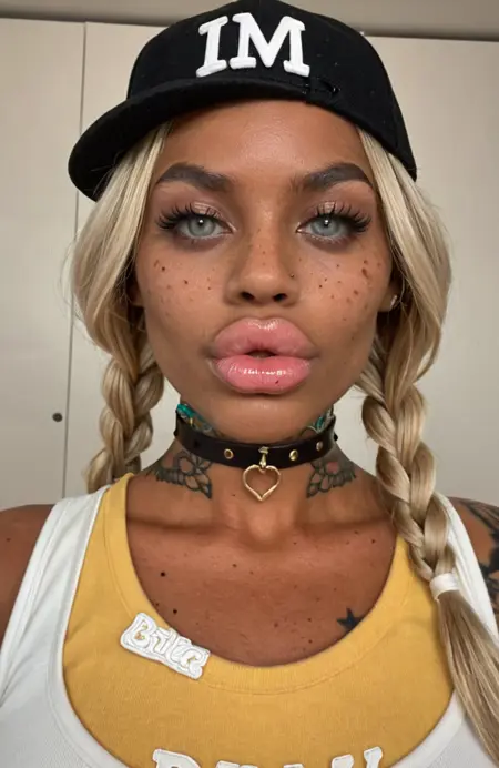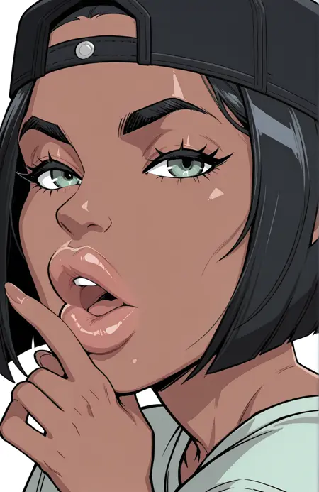 低い強度で動作します。0.6で十分です。使用しているモデルに応じて、「thick lips」「big lips」「large lips」「detailed lips」と追加すると効果的です。