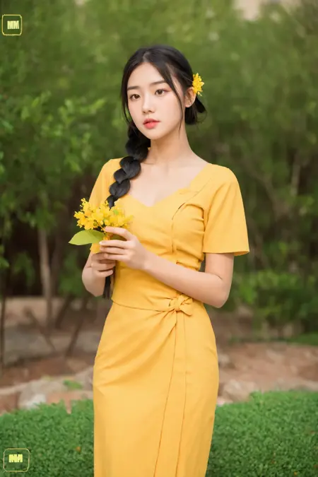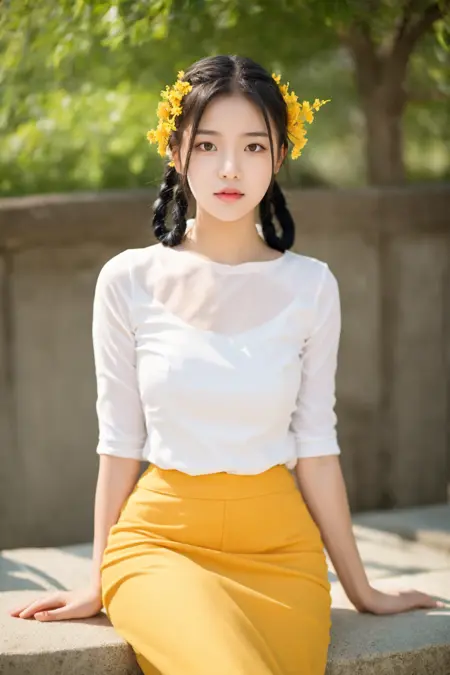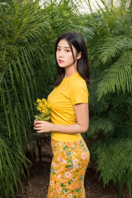 | 训练词汇 | 1girl, solo,flower,black hair,brown hair,hair ornament, single hair bun, single braid, short sleeves, sleeveless, ring, shirt, ponytail, jewelry, skirt, necklace, plant, holding, holding flower, braid, smile, jewelry, purple dress, white dress, green dress, yellow dress, dress, outdoors, twintails, floral print,potted plant,bouquet,squatting, hair flower,hand on hip, bracelet, pants, purple dress, basket, dirty feet, puffy sleeves, wet, sitting, kneeling, twintails, handbag, single braid, nail polish, outdoors,已复制! |