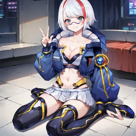Outfit 1 with no jacket & no top: onoblunotp, elbow gloves, white microskirt, thigh boots