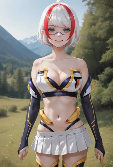 Outfit 1 with no jacket & no top: onoblu, no shirt, elbow gloves, white microskirt, thigh boots