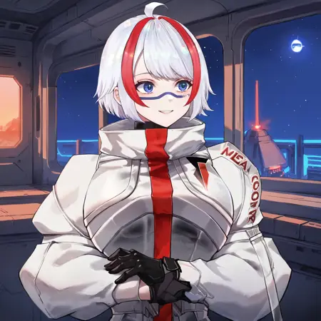 Outfit 2 with no coat: onowht, black bodysuit, sleeveless, black gloves