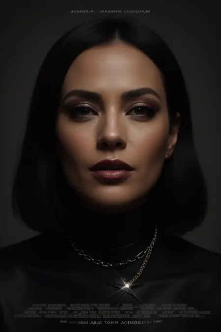 映画ポスターデザイン:(キャラクターを説明)ポーズ(ポーズを説明)服装(服装を説明)髪型(髪型を説明)表情(表情を説明)背景(背景を説明)テキスト(タイトル、キャッチフレーズ)詳細(エフェクト)スタイル(ムード、カラーパレット)