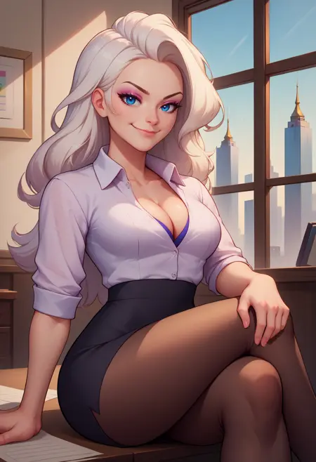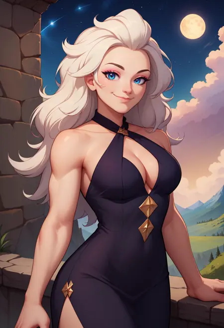 トリガー:**"MarianKelly, blue eyes, eyeliner, white hair, long hair"は常に必要です。正確な体つきを表現するには、可见な場合に"toned"と"abs"**を追加してください。