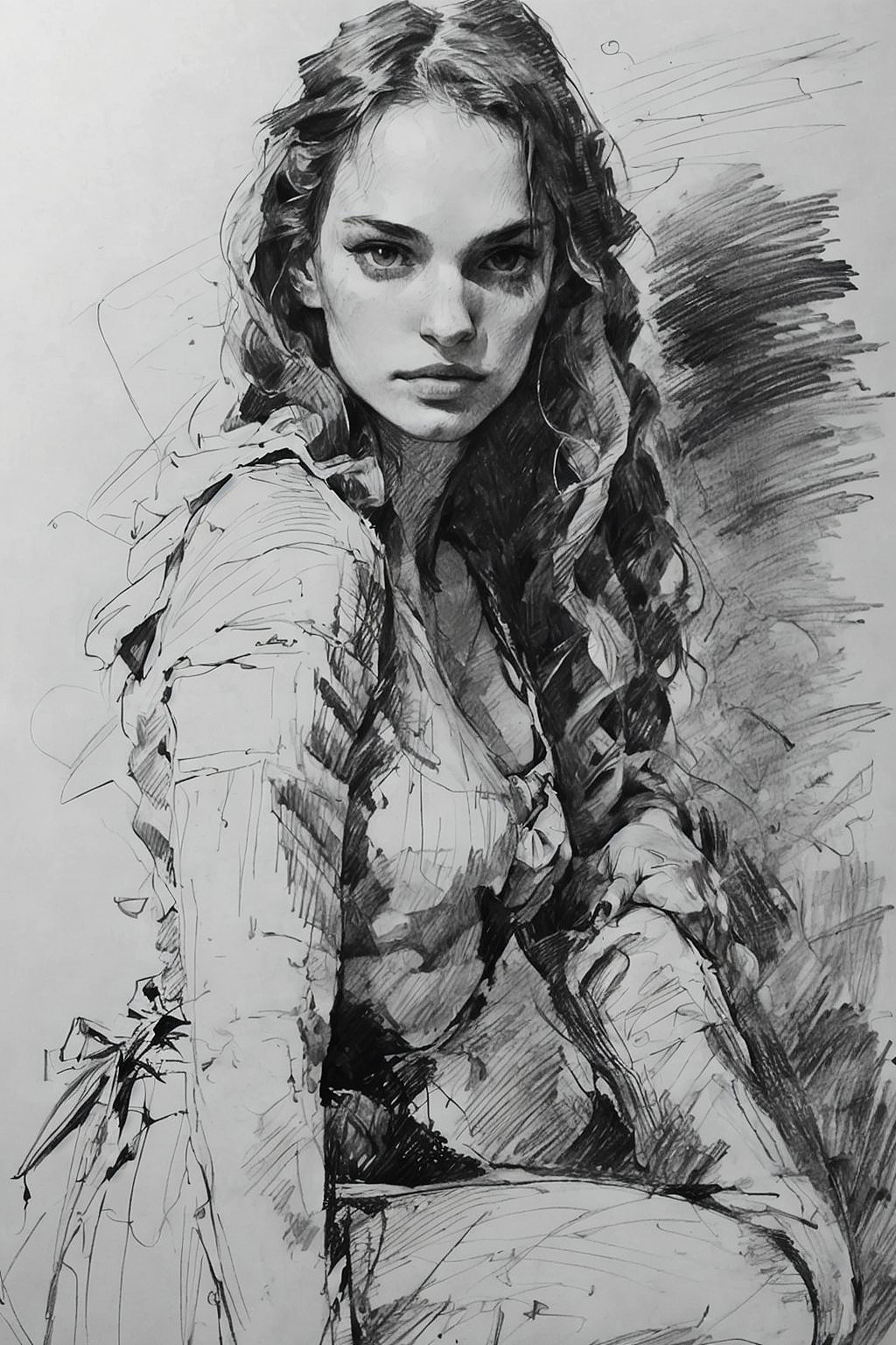 이 체크포인트는 주로 초상화에 대해 학습되었으므로 기적을 기대하지 마세요... 연필, 초상화, 스케치 등의 단어를 사용하세요.