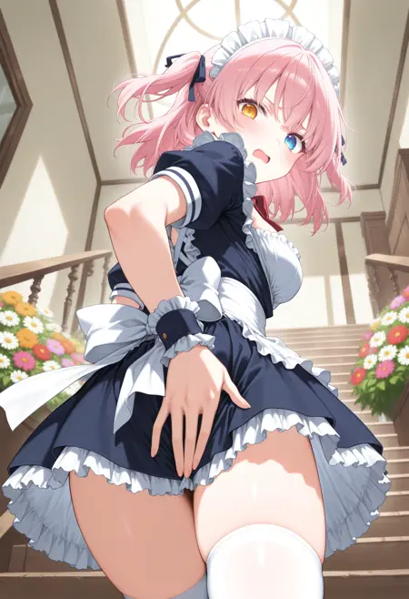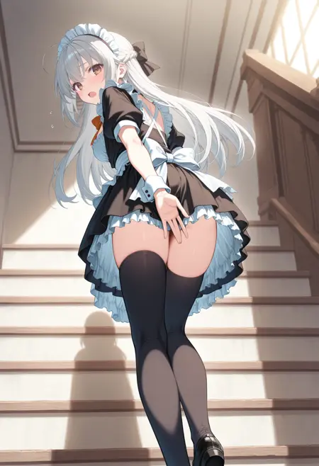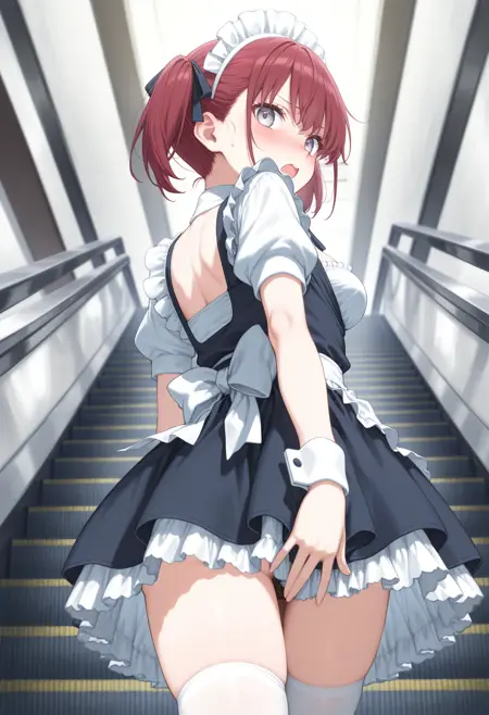 [Illust&XL&Pony] covering crotch / covering ass / 階段でスカート押さえ / エスカレーターでスカート押さえ