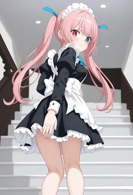 [Illust&XL&Pony] covering crotch / covering ass / 階段でスカート押さえ / エスカレーターでスカート押さえ
