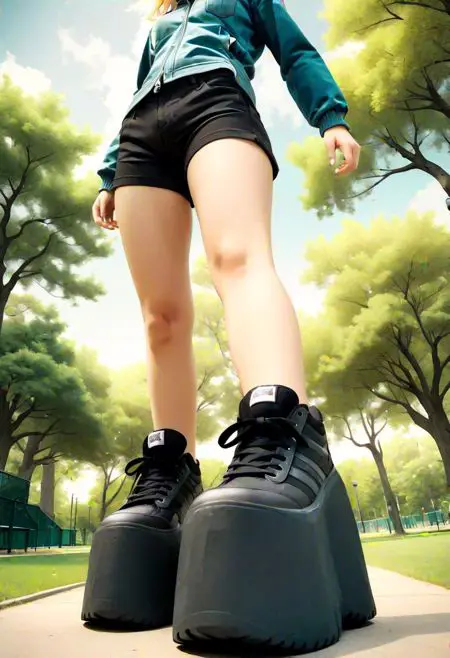 また、 chunky wedge platform boots や chunky buffalo style platform sneakers も生成します。アニメやイラストスタイルの画像と組み合わせると、さらに美しくなります。LoRa の強度 0.25 から 1.5 までよく機能し、強度が高くなるほど極端なプラットフォームが強調されます。