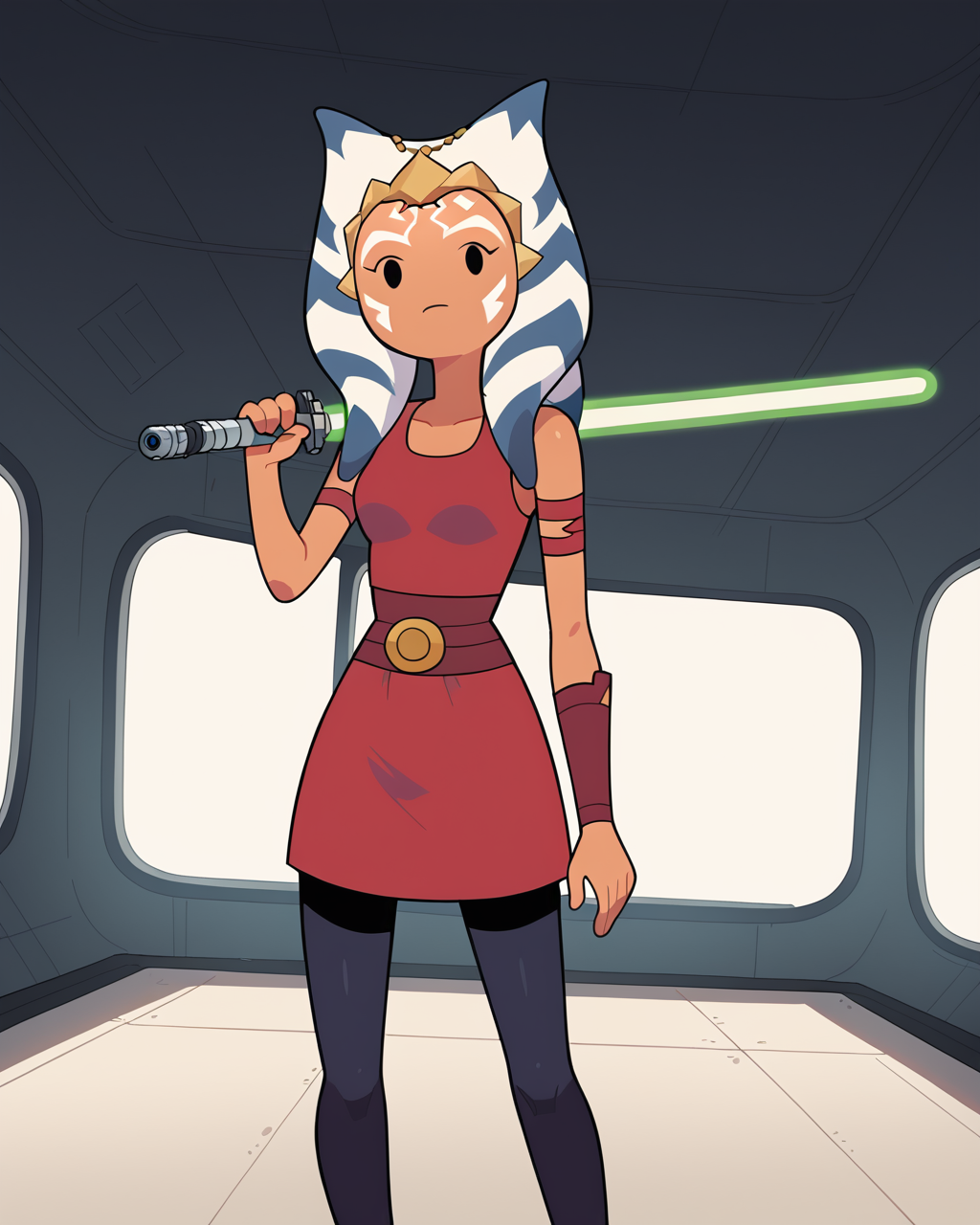 此LORA能够以极少的标签生成高度忠实于《探险活宝》动画风格的图像。根据你希望艺术风格还原的程度,仍可通过标签对其进行调整。我倾向于为简约风格使用“flat colors”(平涂色彩)标签;任何强调画质的标签(如“hyperrealistic”,超现实主义)可能会削弱大部分艺术风格。在这种情况下,我建议使用特定标签如“dot eyes”(圆点眼睛)以保留部分特征。